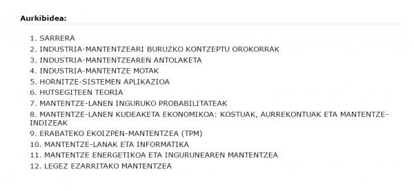 Mantentze-prozesuak eta kudeaketa (I) [Interneteko baliabidea] / Iñaki Campo Celemin eta Iñaki Ugalde Albistegi ; itzultzailea, Lurdes Rada ; zuzenketak, Elhuyar Hizkuntza zerbitzuak