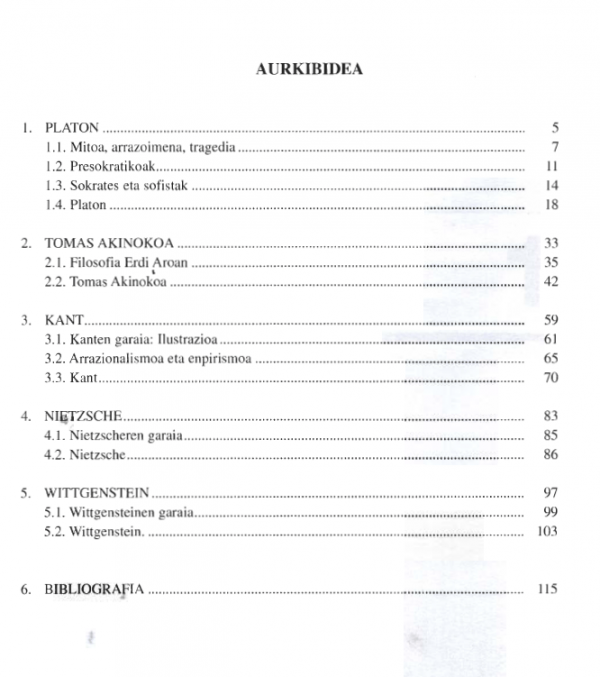 Filosofia : 5 filosofo : Platon, Tomas Akinokoa, Kant, Nietzsche, Wittgenstein / Begoña Olaziregi Salaberria ; [euskara-berrikusketa, Dolo Azpiroz]