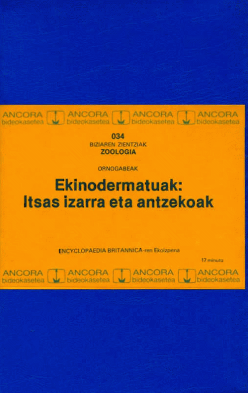 Ekinodermatuak [VHS/BETA Bideoa] Itsas izarra eta antzekoak / ekoizpena, Encyclopaedia Britannica Educational, [euskarazko bertsioa eta bideo-gidak: Elhuyar Kultur Elkartea]