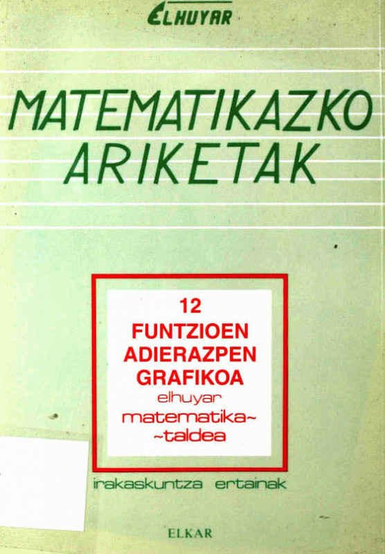 TestuaSerie(ak): Matematikazko ariketak (Elhuyar) ; ; 12 | Matematikazko ariketak (Elhuyar) ; ; 12Publication details: Donostia : Elkar : Elhuyar, L.G. 1994Deskribapen fisikoa: 78 or. ; 24 cmISBN: - 84-7917-410-2