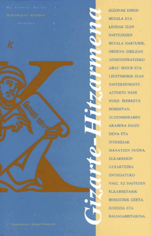 Gizarte-hitzarmena / Jean-Jaques Rousseau ; [euskaratzailea, Bernard Oyharçabal ; berrikuslea, Miren Azkarate ; hitzaurregilea, Manuel Tuñón de Lara]