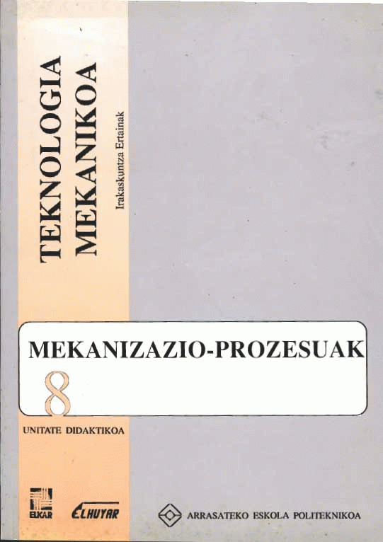TestuaSerie(ak): Teknologia mekanikoa (Elhuyar-Arrasateko Eskola Politeknikoa) ; ; 8 | Teknologia mekanikoa (Elhuyar-Arrasateko Eskola Politeknikoa) ; ; 8Publication details: Usurbil : Elhuyar, L.G. 1991Deskribapen fisikoa: 53 or. : z.-b. ir. ; 24 cmISBN: - 84-7917-089-1