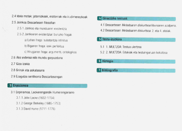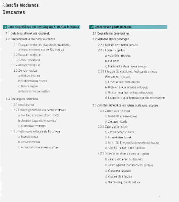 Descartes [Filosofia Modernoa] : Filosofia : Batxilergoa 2 / egileak, Martin Aurrekoetxea Olabarri, M. Lourdes Villar Rodrigo, Alfredo Olarra Aristegi ; koordinazioa, Martin Aurrekoetxea Olabarri ; testuaren zuzenketa, Hitzurun Hizkuntza Zerbitzuak eta Leire Calle Arrinda]
