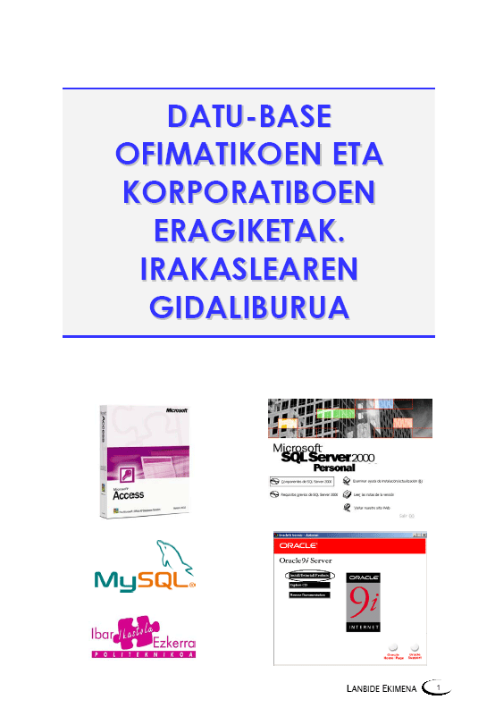 Datu-base ofimatikoen eta korporatiboen eragiketak [Interneteko baliabidea] : irakasle-gida / Joseba Mirena Bilbao Requena eta Nagore Susial Alvarez (Ibar Ezkerra Ikastola Politeknikoa) ; zuzenketak, Elhuyar Hizkuntza Zerbitzuak