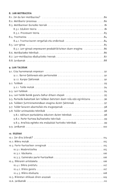 Lanbide Heziketako zehar-lerroa den lan-giroko harremanen arloko liburua da hau. Liburuan gai hauek lantzen dira: komunikazioa, komunikatzeko zailtasunak eta oztopoak, idatzizko eta ahozko komunikazioa, gatazka, negoziazioa, erabakiak hartzea, agintea eta lidergoa, lan-motibazioa, lantaldeak eta bilerak.
