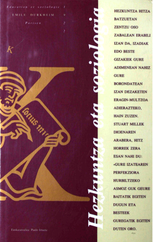 Hezkuntza eta soziologia [Interneteko baliabidea] / Emile Durkheim ; [euskaratzailea, Paulo Iztueta Armendariz ; berrikuslea, Fernando Mendizabal ; hitzaurregilea, Jokin Apalategi]