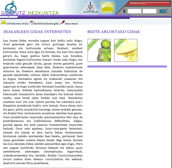Gorputz hezkuntza [Interneteko baliabidea] : Gida didaktikoaren webgunea. DBH 1. zikloa eta DBH 2. zikloa / Gipuzkoako Ikastolen Elkartea