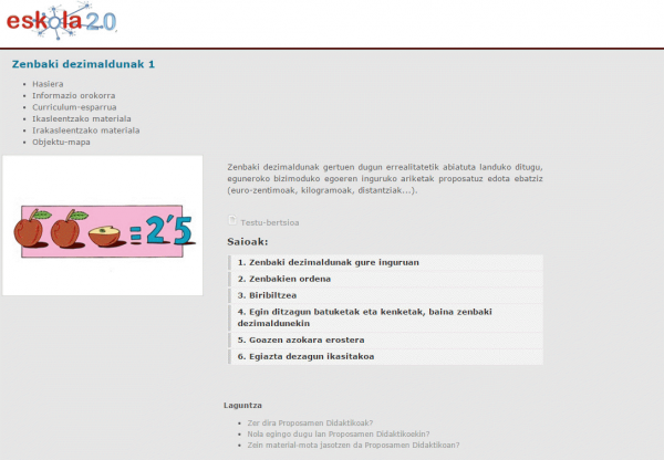 Fitxategi elektronikoaPublication details: Bartzelona : Vimartic , 2011Deskribapen fisikoa: Hezteko Objektu Digitala + Gida didaktikoaGaia(k): Generoa/Forma:Sareko errekurtsoak:Adina / Maila: Zenbaki dezimaldunak gertuen dugun errealitatetik abiatuta landuko ditugu, eguneroko bizimoduko egoeren inguruko ariketak proposatuz edota ebatziz (euro-zentimoak, kilogramoak, distantziak...).