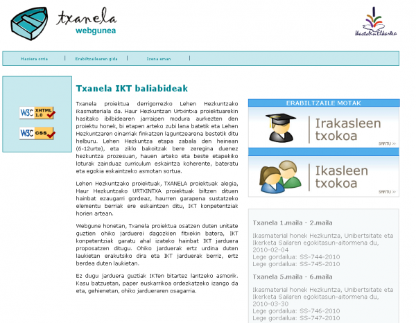 Txanela webgunea [Interneteko baliabidea] (1.maila - 2.maila) / zuzendaritza: Iñaki Lekuona
