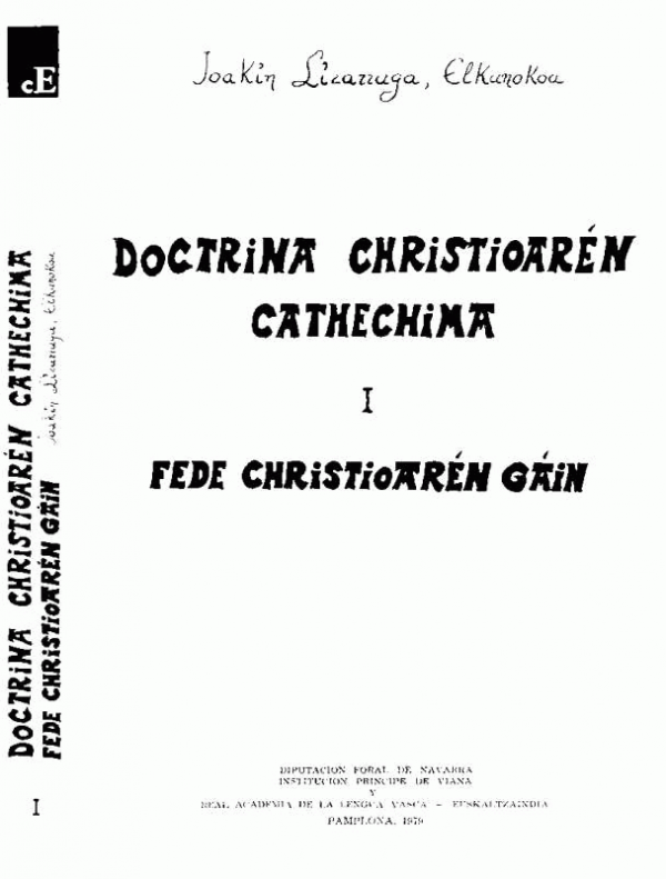 Doctrina Christioaren Cathechima / Joakin Lizarraga, Elkanokoa ; [argitaldia, itzulpena, hitzaurrea, oharrak eta hiztegia, Juan Apecechea Perurena ]
