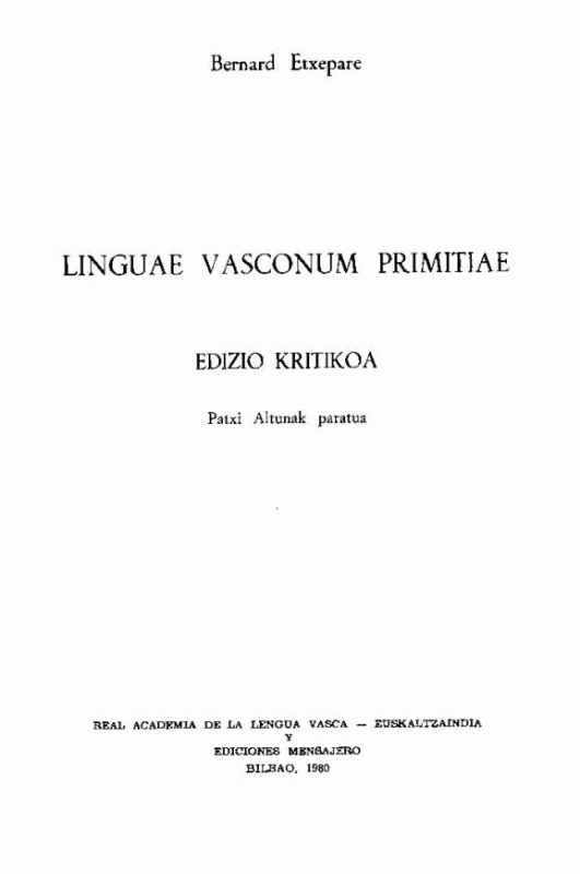 Linguae vasconum primitiae / Bernard Etxepare ; Patxi Altunak paratua