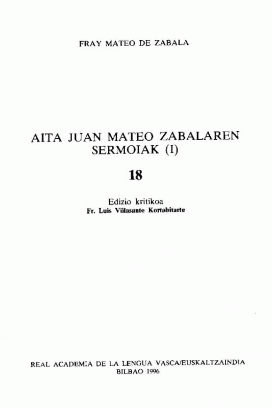 Aita Juan Mateo Zabalaren sermoiak / Fray Mateo de Zabala ; edizio kritikoa, Fr. Luis Villasante Kortabitarte