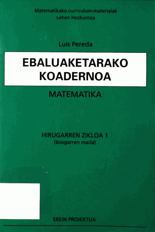 Ebaluaketarako koadernoa : Matematika : hirugarren zikloa 1 (bosgarren maila) / Luis Pereda ; [itzulpena, Iñaki Iñurrieta]