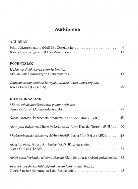 Helduen euskalduntzearen II. eta III. jardunaldiak izeneko liburuarekin hasitako bideari jarraiki, UEUk eta HABEk 2001ean Donostian antolatutako Helduen Euskalduntzearen IV. jardunaldien aktak jaso ditugu liburu honetan.