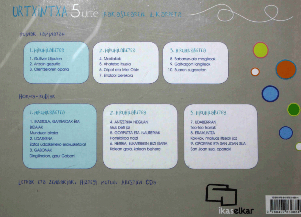 Ipuinak laminatan: Makilakixki; Ahatetxo itsusia; Ziripot eta Miel Otxin; Erraldoi berekoia -- Horma-irudiak: Antzerkia neguan; Gorputza eta inauteriak; Herria: elkarrekin bizi gara -- , abestien CDa (abestiak 8) - Hiztegi mutua