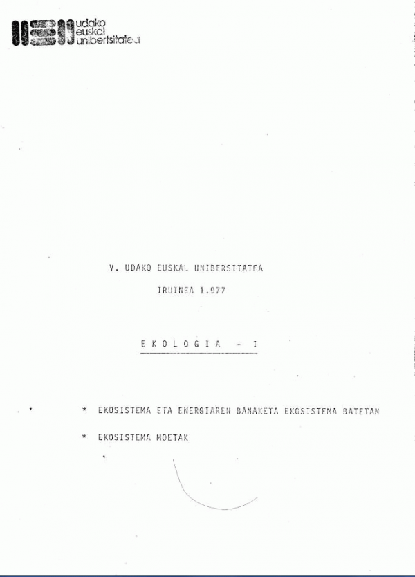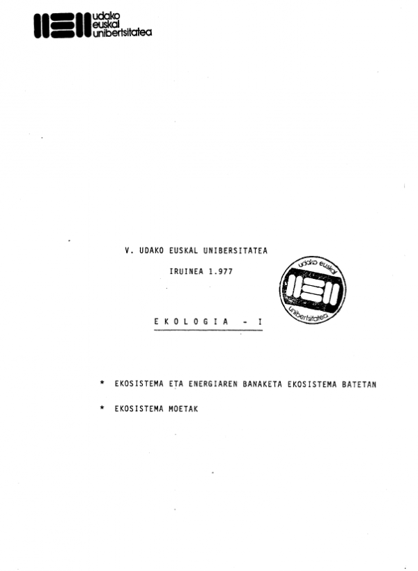 Ekologia I [Interneteko baliabidea] : ekosistema eta energiaren banaketa ekosistema batean; ekosistema moetak / V. Udako Euskal Unibertsitatea ; prestaileak: Maite Ausin eta Marialui Zubiaurre