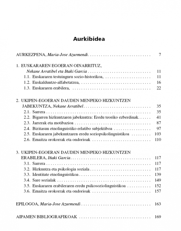 Menpeko hizkuntza gutxiagotuen normalizazioa lortzeko, bi erronka nagusi daude: hizkuntzaren ezagutza bermatzea eta hizkuntzaren erabilera hedatzea. Gauza jakina da, hizkuntzaren ezagutza bermatzeko bide eraginkorrena hezkuntza-sistema dela; hala ere ezin dugu ahaztu populazio handi bat hezkuntza-sistematik at geratzen dela. Beraz, garrantzi handiko eremua ditugu helduen irakaskuntza eta bigarren hizkuntzen jabekuntza-prozesua. Bestalde, hizkuntza-normalizazioa hanka motz gera ez dadin, erabilerari erreparatu behar zaio. Horregatik, liburu honetan euskararen erabilera- eta jabekuntza-prozesuak (bigarren hizkuntza modura) aztertzen dira, batez ere ikuspegi teoriko batetik. Dena den, beharrezkoa izanda ere, teoria ez da nahikoa: errealitatea aldatu nahi bada, maila teorikoan egindako hausnarketak eta analisiak praktikan frogatu (edo errefusatu) behar dira. Liburu honetan autoreek proposatzen dituzten eredu teorikoak enpirikoki frogatzen dira; modu horretan, batetik, jabekuntzan motibazioak betetzen duen rola eta, bestetik, erabileran identitateak duen garrantzia ditugu aztergai.