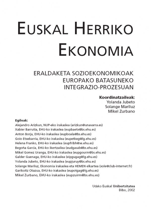 Euskal Herriko ekonomia [Interneteko baliabidea] : eraldaketa sozioekonomikoak, Europako Batasuneko integrazio-prozesuan / koordinatzaileak, Yolanda Jubeto, Solange Mariluz, Mikel Zurbano ; egileak, Alejandro Arizkun...[et al.]