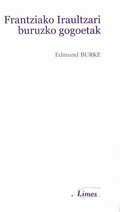 Frantziako Iraultzari buruzko gogoetak / Edmund Burke ; sarrera, Antonio Rivera García ; itzulpena, Patxi Ezkiaga Lasa