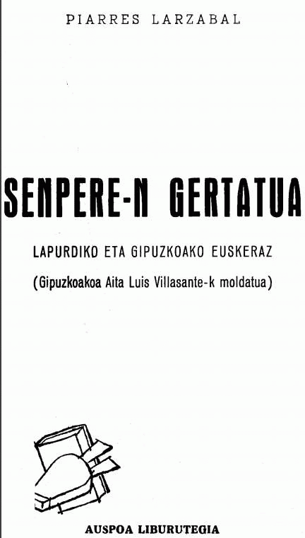 Senpere-n gertatua [Interneteko baliabidea] : Lapurdiko eta Gipuzkoako euskeraz / Piarres Larzabal ; (gipuzkoakoa Aita Luis Villasante-k moldatua)