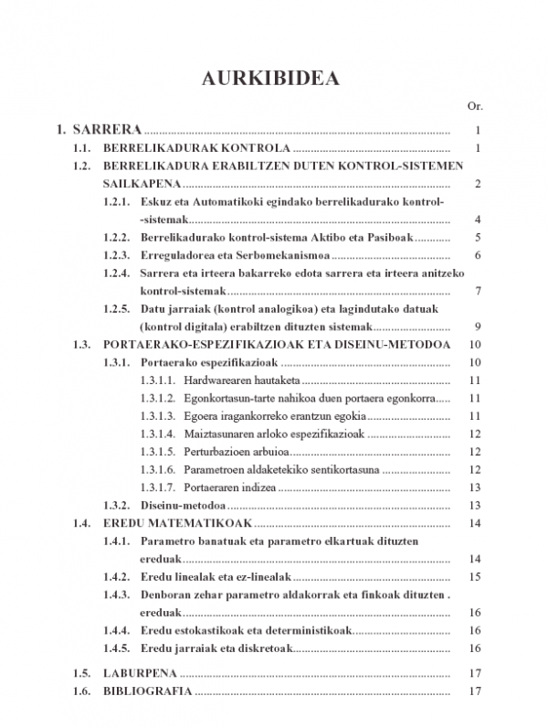 Liburu hau kontrol-injinerutzaren itsasoan murgiltzeko testu-liburu gisa eratu da. Injinerutza (hainbat espezialitatetan) ikasten ari direnei nahiz kontrol-arloan industrian lan egiten duten profesionalei zuzenduta dago. Aurkezten den materiala Injineuren Goi-Mailako Eskoletan nahiz Industri Ingeniaritza Teknikorako Unibertsitate Eskoletan erabil daiteke. Hasieran, kontrol-sistemen diseinua egiteko metodologia erakusten da kontzeptualki. Gero, kontroladoreak diseinatzeko behar diren tekniken azterketa egiten da eta, bereziki, PID kontroladoreen diseinu-analisia aurkezten da, industrian gehien erabiltzen diren kontroladoreak baitira.