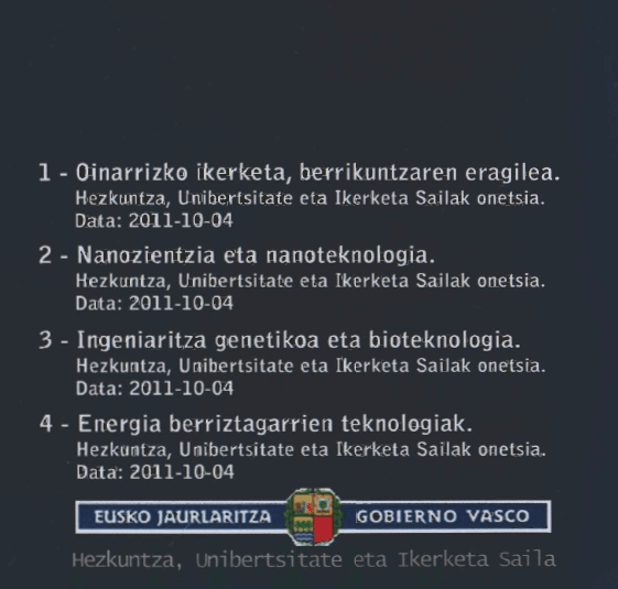 1.- Oinarrizko ikerketa, berrikuntzaren eragilea; 2.- Nanozientzia eta nanoteknologia; 3.- Ingeniaritza genetikoa eta bioteknologia; 4.- Energia berriztagarrien teknologiak