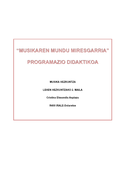 Musikaren mundu miresgarria [Interneteko baliabidea] : programazio didaktikoa / Cristina Etxeandia Aspiazu