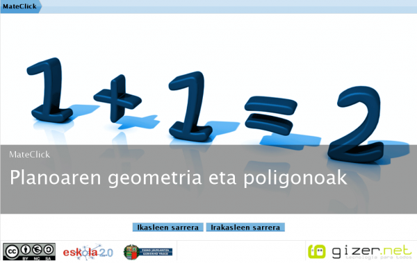 MateClick. [Matematika-arloa - DBH1-4] [Interneteko baliabidea - Eduki digital didaktikoa] 5. unitatea: Planoaren geometria eta poligonoak / Gizer.net