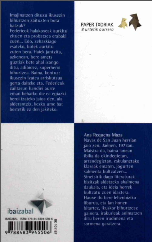 TestuaHizkuntza: Basque Original language: Spanish Serie(ak): Paper txoriak (Ibaizabal) ; ; 15Publication details: [Amorebieta-Etxano] : Ibaizabal, L.G. 2011Deskribapen fisikoa: 115 or. : z.-b. ir. ; 20 cmISBN: - 978-84-8394-550-6