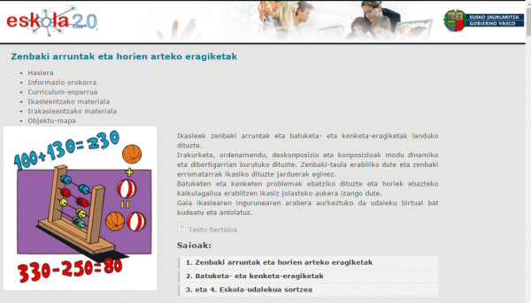 Fitxategi elektronikoaPublication details: Bartzelona : Vimartic , 2011Deskribapen fisikoa: Hezteko Objektu Digitala + Gida didaktikoaGaia(k): Generoa/Forma:Sareko errekurtsoak:Adina / Maila: Ikasleek zenbaki arruntak eta batuketa- eta kenketa-eragiketak landuko dituzte. Irakurketa, ordenamendu, deskonposizio eta konposizioak modu dinamiko eta dibertigarrian burutuko dituzte. Zenbaki-taula erabiliko dute eta zenbaki erromatarrak ikasiko dituzte jarduerak eginez. Batuketen eta kenketen problemak ebatziko dituzte eta horiek ebazteko kalkulagailua erabiltzen ikasiz jolasteko aukera izango dute. Gaia ikaslearen ingurunearen arabera aurkeztuko da udaleku birtual bat kudeatu eta antolatuz.
