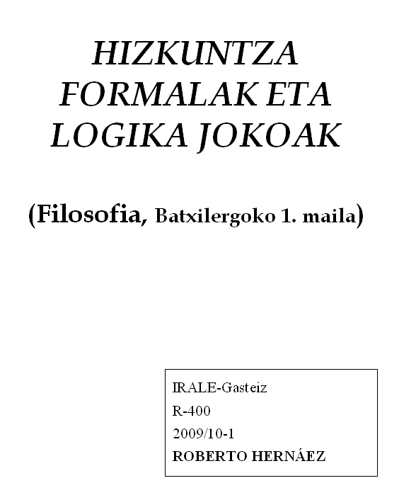Hizkuntza formala eta logika jokoak [Interneteko baliabidea] / Roberto Hernáez Rubio