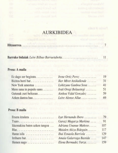 Gaia(k): Generoa/Forma:Sareko errekurtsoak:Adina / Maila: Euskarazko literatura-lan sarituen bilduma. Lan horiek EAEko DBHko ikastetxeetako ikasleek egin zituzten, 2010 ikasturtean. Bilduma Eusko Jaurlaritzaren Hezkuntza Sailak egin du, ikasleak euskara erabiltzera bultzatzeko, euskara balia dezaten hausnarketen eta sentimenduen adierazpide gisa.
