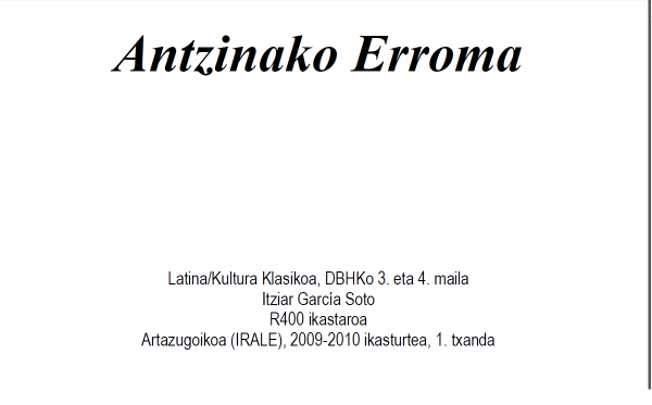 Antzinako Erroma [DBH 3-4] [Interneteko baliabidea] / Itziar García Soto