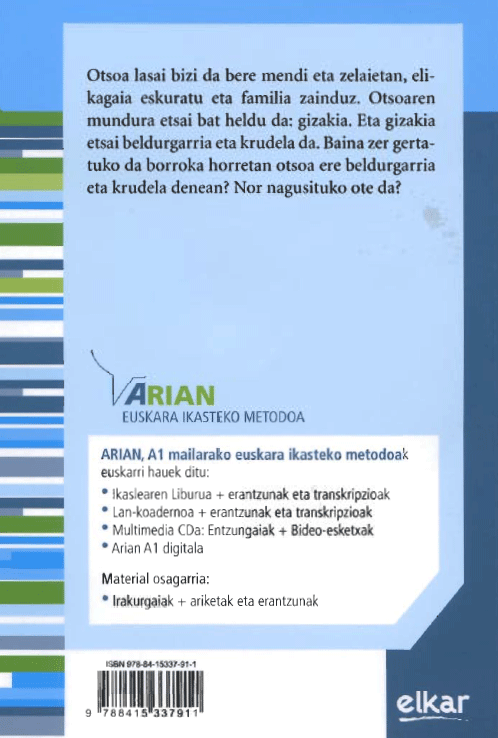 TestuaSerie(ak): EIMA 1 (2012ko deialdia) | Arian irakurgaiakPublication details: Donostia : Elkar , 2012Deskribapen fisikoa: 61 orr. : kol. ir. ; 21 cm + 1 CDISBN: - 978-84-15337-91-1