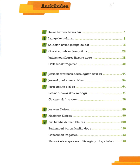 Erlijino Katolikoa : Lehen Hezkuntza: 4. maila (Bizkaieraz) / egileak: Concepción Alcaraz Sánchez... [et al.]; gainbegirale teknikoa: Elisa Vega Montero; gainbegiratzea: Antonio Francisco Ortega Molina; [testua: Saretik Hizkuntza Zebitzuak]