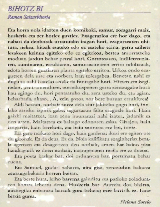 Bihotz bi : gerrako kronikak / Ramon Saizarbitoria