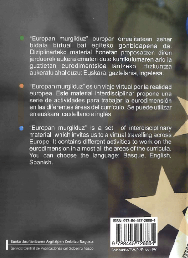 Europan murgilduz . 1 , Pelloren abenturak = Las aventuras de Pello = The aventures of Pello [CD-ROMa] / egileak , Xabier Angulo Pinedo, Inmaculada Redondo de Aza ; itzulpena, gazteleratik euskarara et inglesera, Bakun
