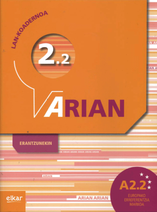 Arian 2.2: euskara ikasteko metodoa . Lan koadernoa / koordinazioa, Elkar argitaletxea; egilea: Itziar Etxabe... [et al.]; [marrazkiak: Alex Orbe eta Kepa Orbe]