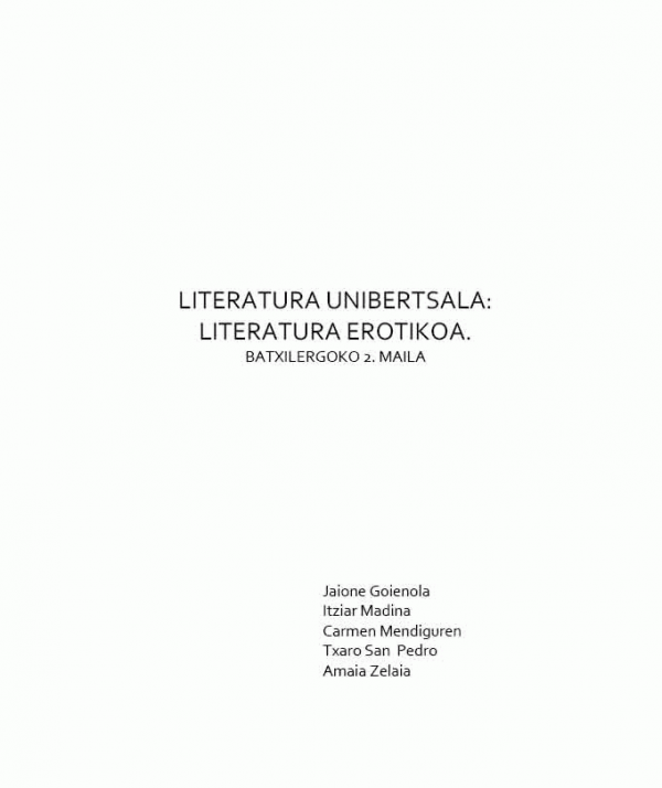 Literatura unibertsala [Interneteko baliabidea] : literatura erotikoa : Batxilergoa 2 / Jaione Goienola ... [et al.]