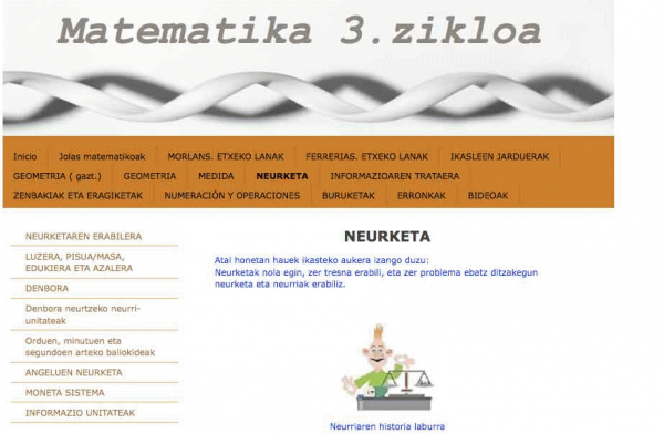 Matematika ikasten jolasaren bitartez [Lehen Hezkuntza 3. zikloa] [Interneteko baliabidea - Webgunea] : neurketa atala / Maite Pérez de Albéniz
