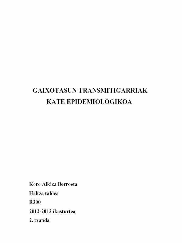 Gaixotasun transmitigarriak [Interneteko baliabidea] : kate epidemiologikoa / Koro Alkiza Berroeta