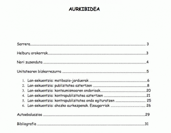 Lan honetan ikasleek kontrapublizitate horma-irudi bat sortuko dute. Azken ekoizpen hori ahoz azalduko dute beste ikasleen aurrean. Horretarako, publizitatearen ezaugarririk behinenak ezagutuko dituzte, eta publizitatearen aurrean irakurketa erreflexiboa egiten ikasiko dute, kontsumismoaren ondorio txarrak kontuan hartuta. Kontrapublizitate ereduak aztertuko dituzte, eta euren kontrapublizitate horma-irudiaren ezaugarriak erabakiko dituzte. Hori guztia lan-taldeetan egingo dute.