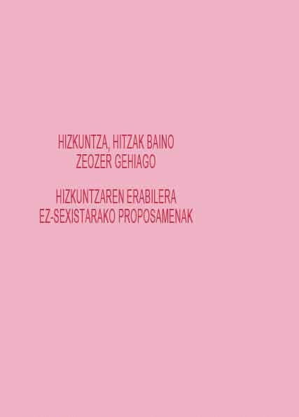 Hizkuntza, hitzak baino zeozer gehiago : hizkuntzaren erabilera ez-sexistarako proposamenak / [egilea, EMAKUNDE, Emakumearen Euskal Erakundea ; koordinatzailea, Ana Rincón] [Interneteko baliabidea]