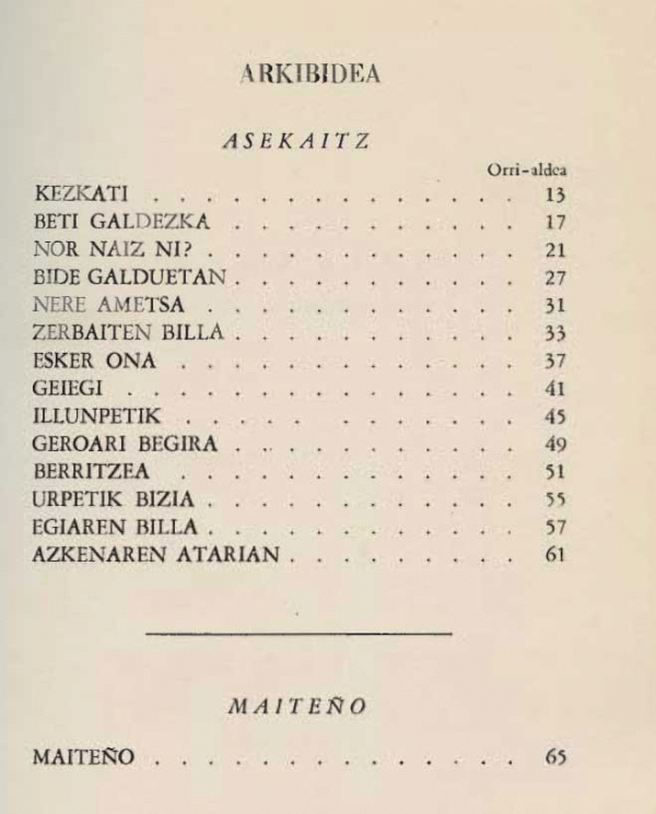 Asekaitz / Martín Iturbe Balda. Maiteño / Xabier Azurmendi