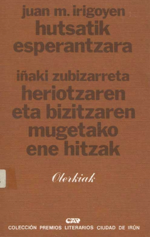 Hutsatik esperantzara / Juan Mari Irigoyen. Heriotzaren eta bizitzaren mugetako ene hitzak / Iñaki Zubizarreta