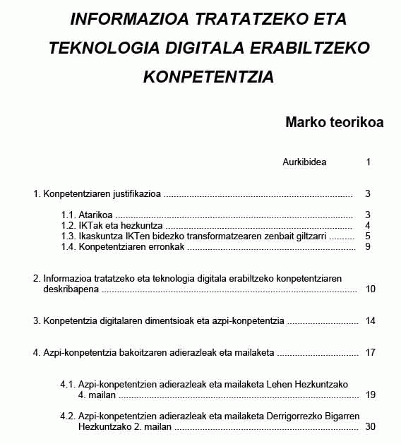 Informazioa tratatzeko eta teknologia digitala erabiltzeko konpetentzia [Interneteko baliabidea] . Marko teorikoa [Ebaluazio diagnostikoa] / ISEI- IVEI