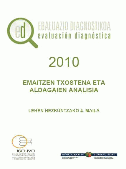 Ebaluazio diagnostikoa 2011 [Interneteko baliabidea] . emaitzen txostena eta aldagaien azterketa Lehen Hezkuntzako 4. mailan /egilea, Amaia Arregi Martínez; aholkularitza teknikoa, Eduardo Ubieta Muñuzuri; berrikusketa, ISEI- IVEI