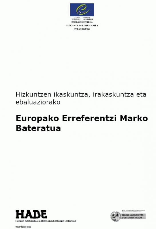 Hizkuntzen ikaskuntza, irakaskuntza eta ebaluaziorako Europako Erreferentzi Marko Bateratua. Europako Kontseilua / Eusko Jaurlaritza [Interneteko baliabidea]
