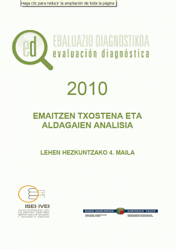 Ebaluazio diagnostikoa 2010 [Interneteko baliabidea] : emaitzen txostena eta aldagaien analisia - Lehen Hezkuntzako 4. maila /Amaia Arregi Martínez, Inmaculada Tambo Hernández; ISEI-IVEI
