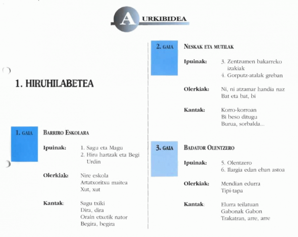 Ipuinak, olerkiak eta kantak : 4 [urte] [Bizkaiera] / [egileak: María Felipe, Karmen Martín; marrazkiak: Angel Domínguez, Belén Lucas, Jesse]